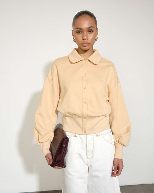 We created the Coffee Run Cardi for when you're working from home, travelling, or grabbing coffee but still want to feel cute. Made from a cosy heavyweight 100% cotton fleece fabrication, the Coffee Run Cardi will become a staple in your capsule collection.